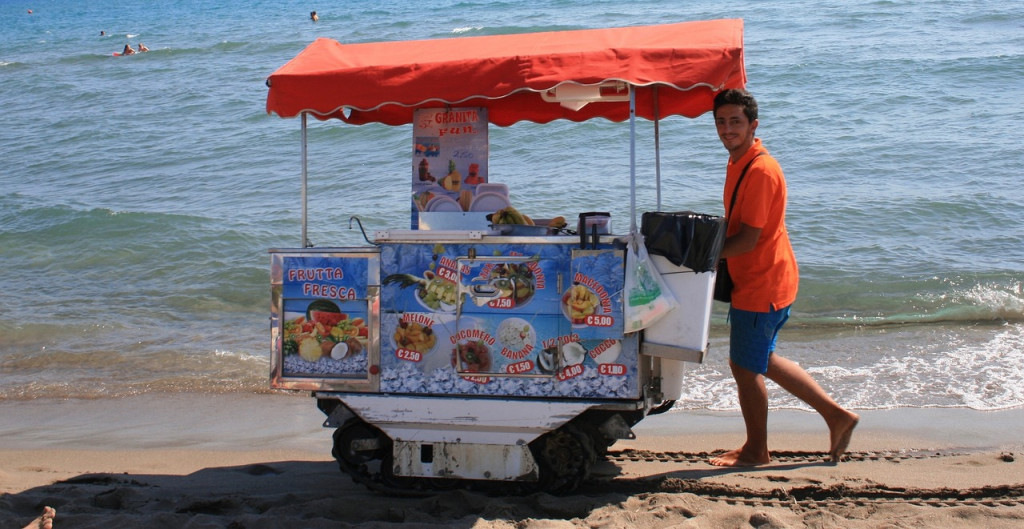Beginnen wir mit einem sommerlichen Experiment. Ein Strand von 10 Meter Breite und 100 Meter Länge sei im Osten und Westen durch Felsen begrenzt, im Norden durch das Meer und im Süden durch eine Uferpromenade. An diesem Strand gibt es genau zwei Eisverkäufer mit je einem mobilen Eisverkaufsstand, der aber nur längs der Uferpromenade bewegt werden kann, nicht im Sand. Der Strand ist gleichmäßig mit Badegästen gefüllt. Beide Eisverkäufer bieten ihr Eis zu vergleichbarer Qualität und zu vergleichbaren Preisen an. Gesucht ist die optimale Position beider Eisverkäufer.