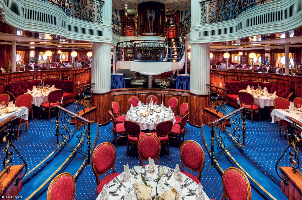 Als Krafft genügend Geld verdient hatte, verkaufte er alles, um seinen Traum von der Wiederbelebung der legendären Klipperromantik zu erfüllen, wobei ihn seine Ehefrau Ann tatkräftig unterstützte. Krafft gründete in Monaco eine Reederei, fand einen erfahrenen Konstrukteur und einen Schiffsdesigner. 1991 und 1992 liefen seine ersten beiden Segelschiffe vom Stapel, eben auch unsere Star Clipper, die inzwischen, man muss es so sagen, ordentlich Patina angesetzt hat und mit viel Plüsch und Messing und der etwas aufdringlichen, sich auf jeden kleinen Teller fortpflanzenden Ornamentik der Schiffstaue so sehr aus der Zeit gefallen daherkommt, dass man es schon wieder mögen kann.